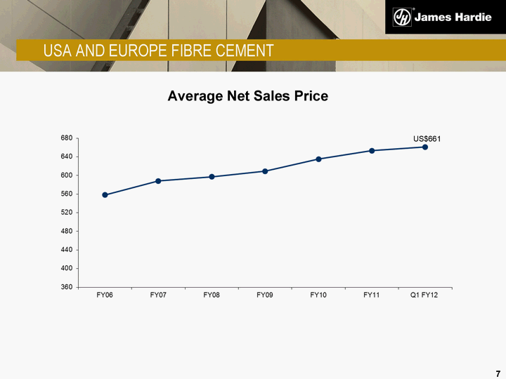 | 7 USA AND EUROPE FIBRE CEMENT Average Net Sales Price US$661 |