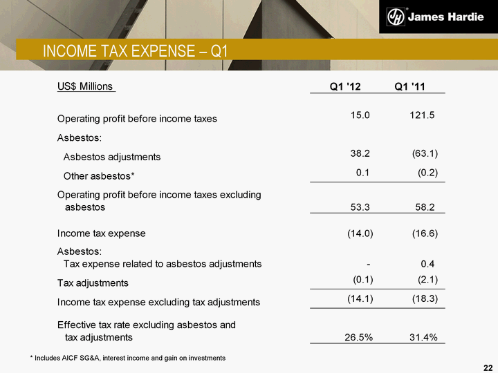 | 22 INCOME TAX EXPENSE - Q1 * Includes AICF SG&A, interest income and gain on investments |