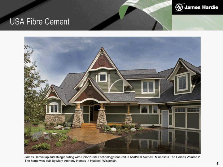 | James Hardie lap and shingle siding with ColorPlus(r) Technology featured in MidWest Homes' Minnesota Top Homes Volume 2. The home was built by Mark Anthony Homes in Hudson, Wisconsin. USA Fibre Cement |