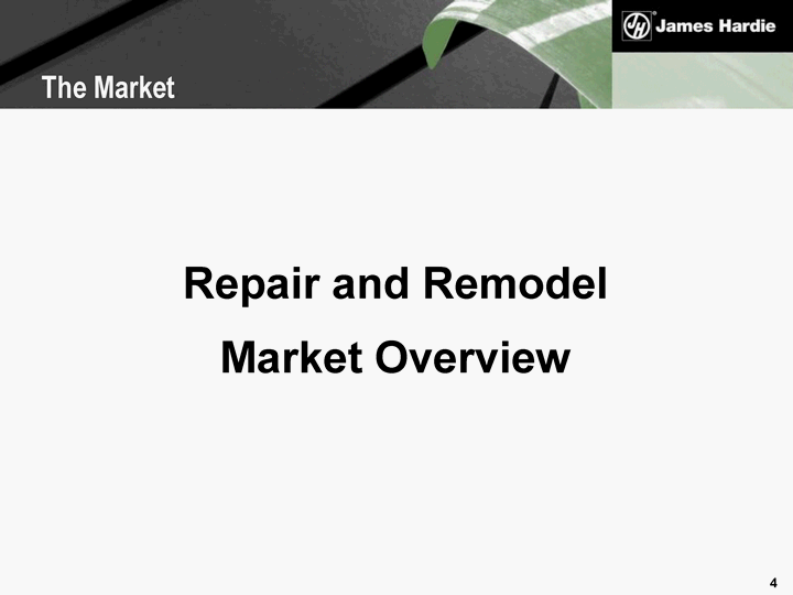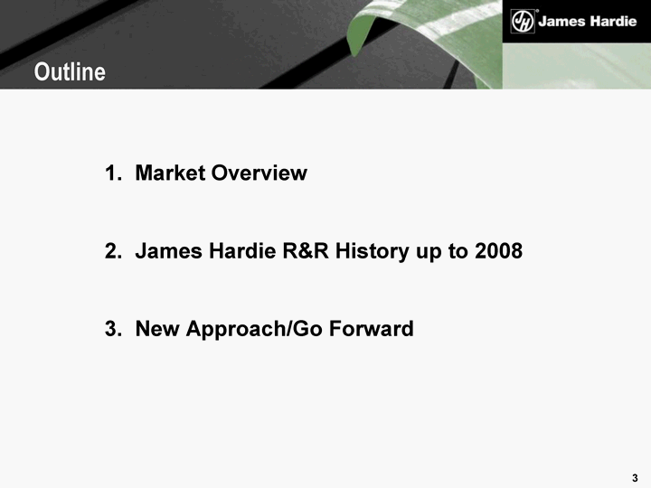 | 1. Market Overview 2. James Hardie R&R History up to 2008 3. New Approach/Go Forward Outline |