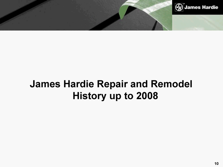 | James Hardie Repair and Remodel History up to 2008 |