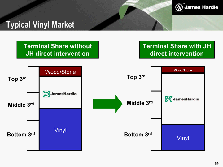 | Middle 3rd Top 3rd Terminal Share without JH direct intervention Bottom 3rd Terminal Share with JH direct intervention Middle 3rd Top 3rd Bottom 3rd Wood/Stone Wood/Stone Vinyl Vinyl Typical Vinyl Market |