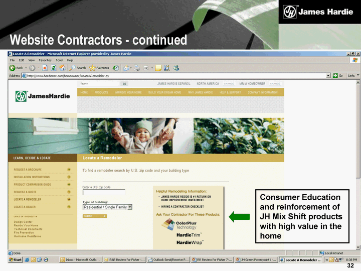 | Consumer Education and reinforcement of JH Mix Shift products with high value in the home Website Contractors - continued |
