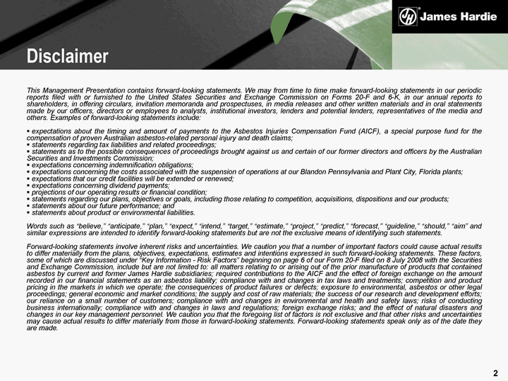 This Management Presentation contains forward-looking statements. We may from time to time make forward-looking statements in our periodic