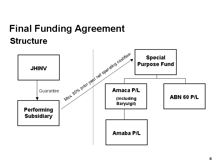 | Final Funding Agreement Structure Amaba P/L Performing Subsidiary Special Purpose Fund Amaca P/L (including Baryulgil) ABN 60 P/L JHINV Guarantee Max. 35% prior year net operating cashflow |