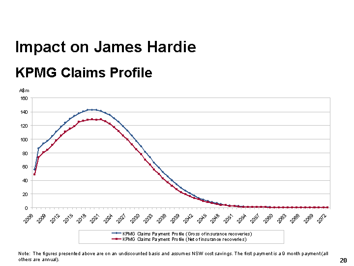 | Impact on James Hardie KPMG Claims Profile Note: The figures presented above are on an undiscounted basis and assumes NSW cost savings. The first payment is a 9 month payment (all others are annual). |