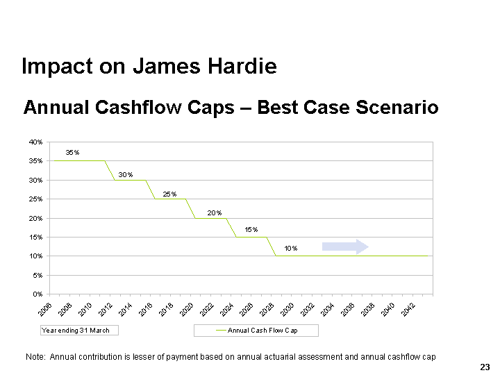 | Impact on James Hardie Annual Cashflow Caps - Best Case Scenario Note: Annual contribution is lesser of payment based on annual actuarial assessment and annual cashflow cap |