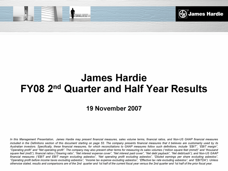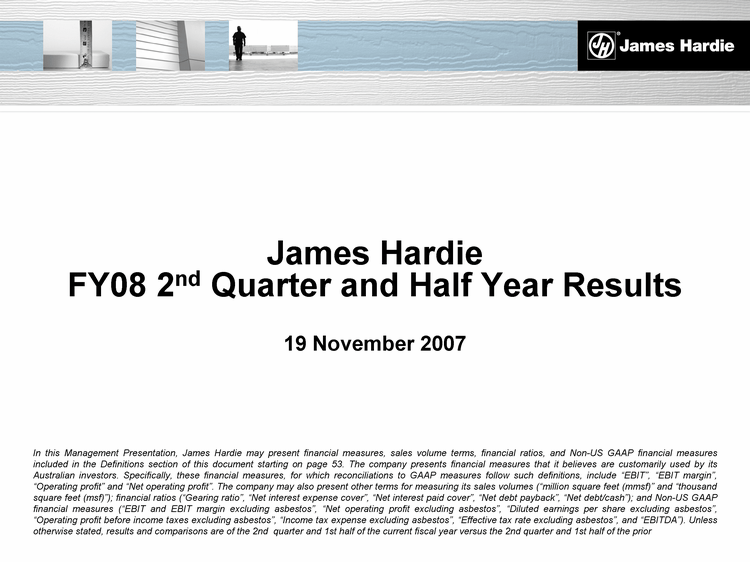 | Media Release: James Hardie 2nd Quarter and Half Year FY08 | 1 |