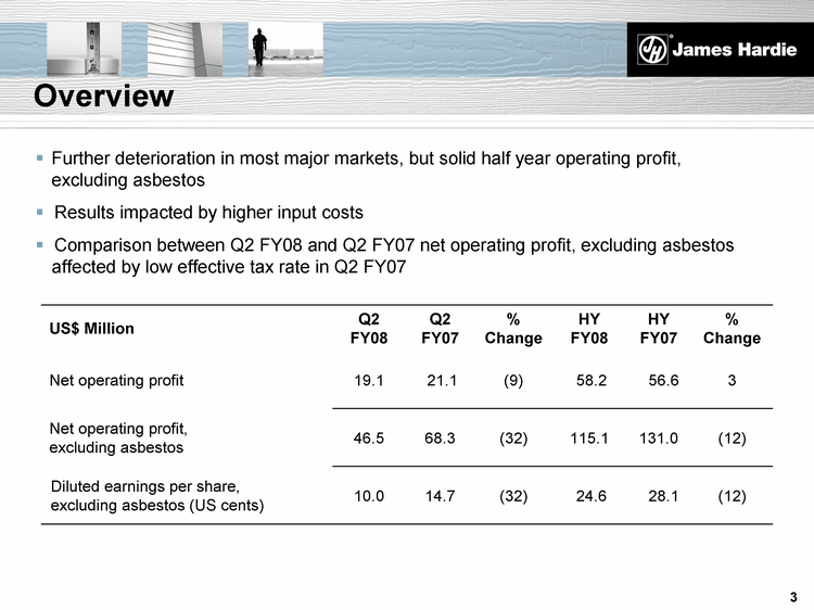 | Media Release: James Hardie 2nd Quarter and Half Year FY08 | 3 |