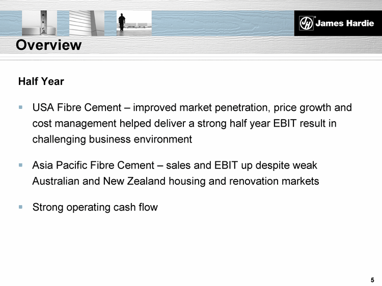 | Media Release: James Hardie 2nd Quarter and Half Year FY08 | 5 |