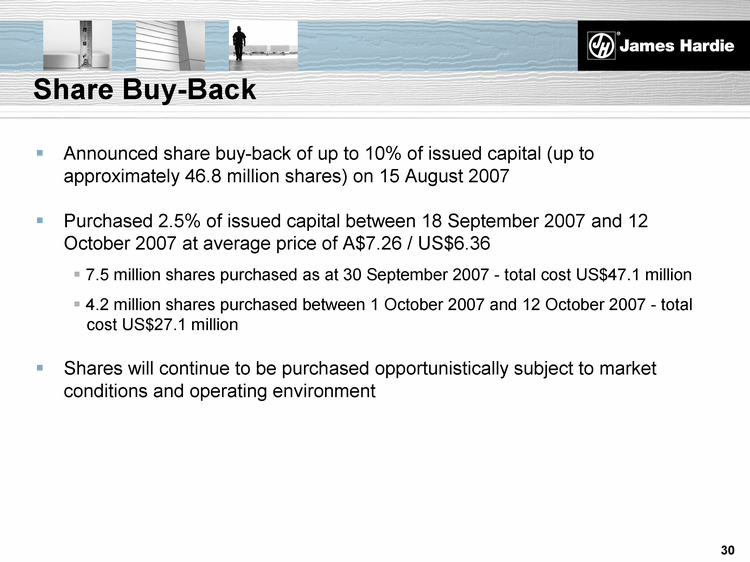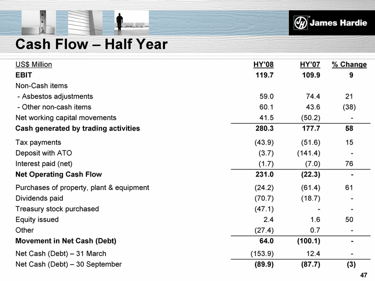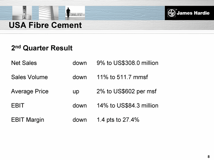 | Media Release: James Hardie 2nd Quarter and Half Year FY08 | 7 |