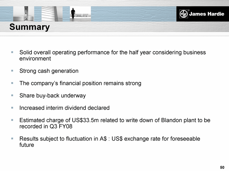 | Media Release: James Hardie 2nd Quarter and Half Year FY08 | 2 |