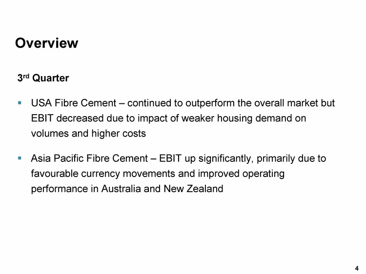 | Media Release: James Hardie 3rd Quarter and Nine Months FY08 | 4 |