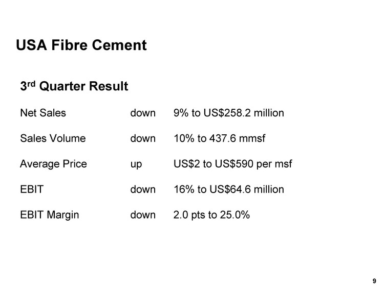 | Media Release: James Hardie 3rd Quarter and Nine Months FY08 | 8 |