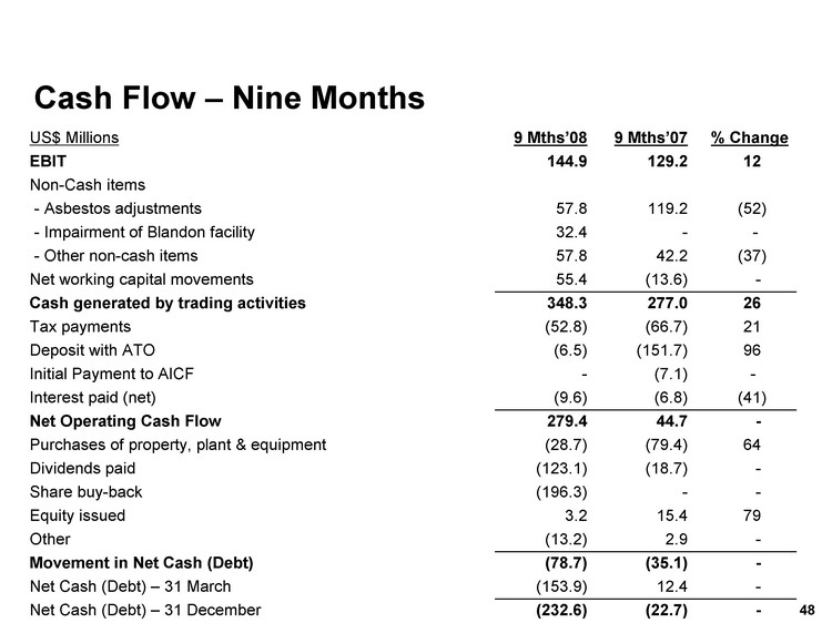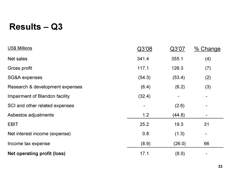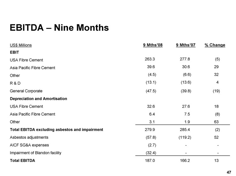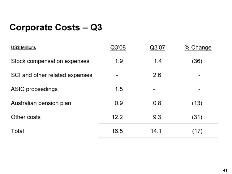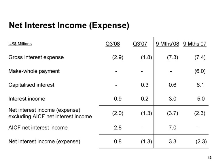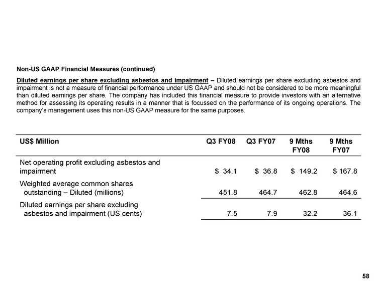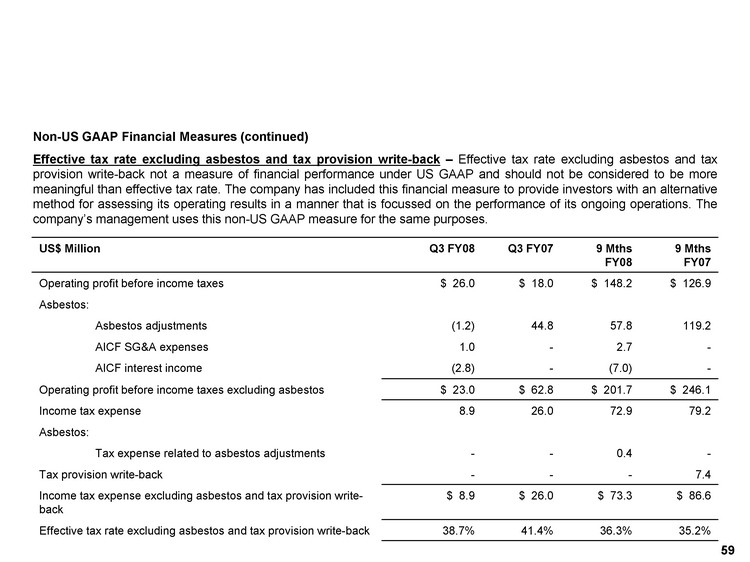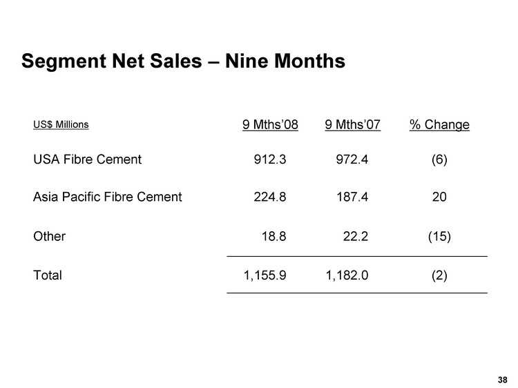 | US$ Million | Q3 FY08 | Q3 FY07 | 9 Mths | 9 Mths | |||||||||||||