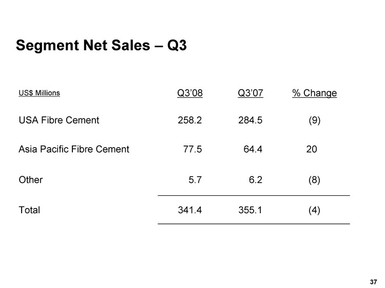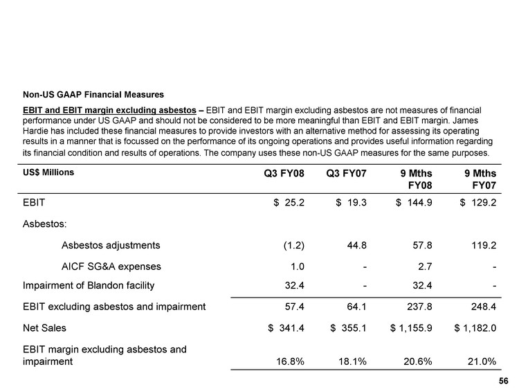 | Media Release: James Hardie 3rd Quarter and Nine Months FY08 | 7 |