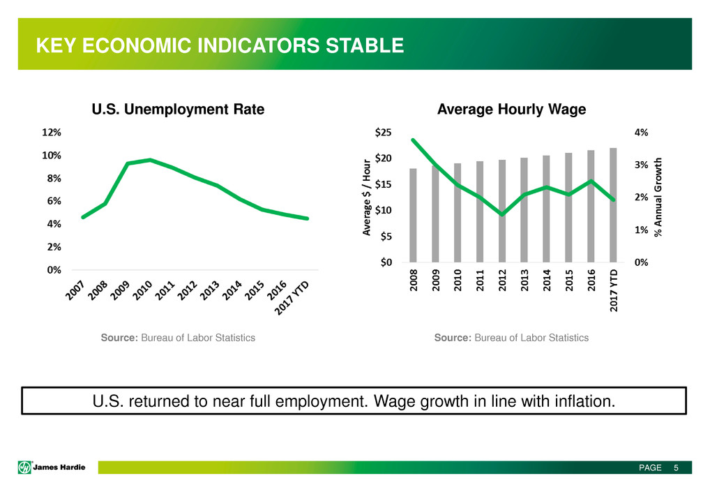 U.S. returned to near full employment. Wage growth in line with inflation.
