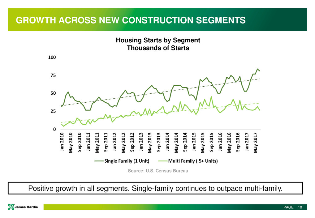 Positive growth in all segments. Single-family continues to outpace multi-family.