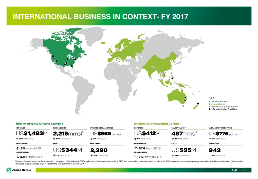 2Unless otherwise stated for fiscal years 2011 through to 2017, Adjusted EBIT graphs and editorial comments refer to EBIT that may exclude asbestos, asset impairments, ASIC expenses, non-recurring stamp duty and/or New Zealand weathertightness claims.