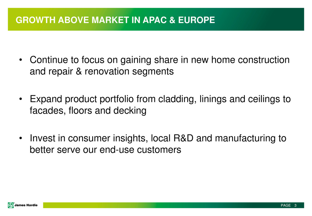 GROWTH ABOVE MARKET IN APAC & EUROPE