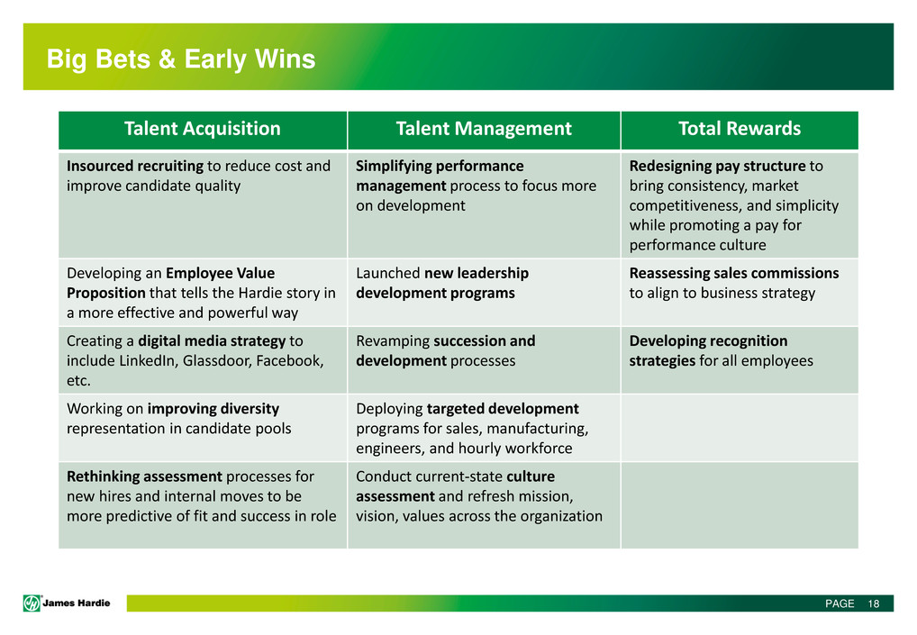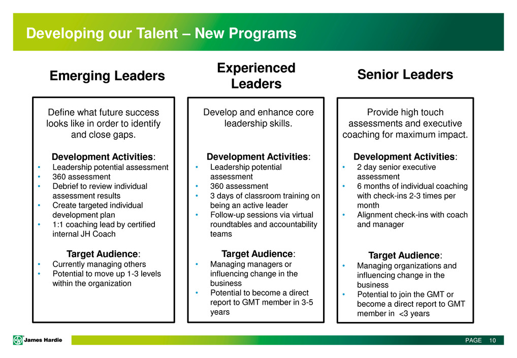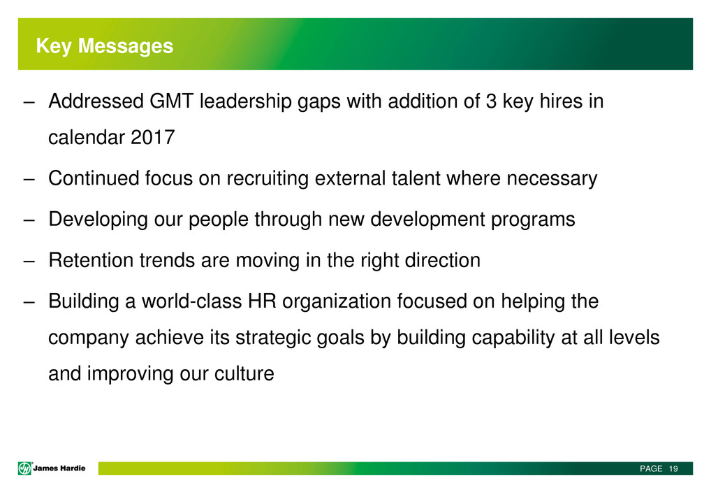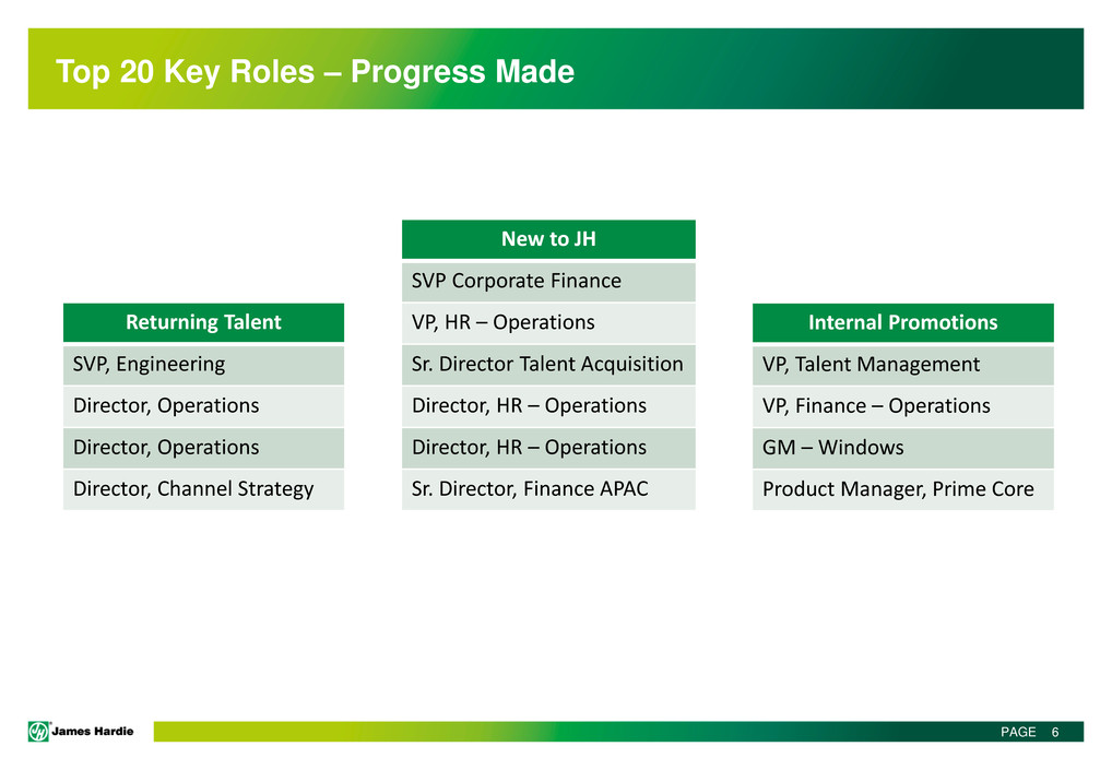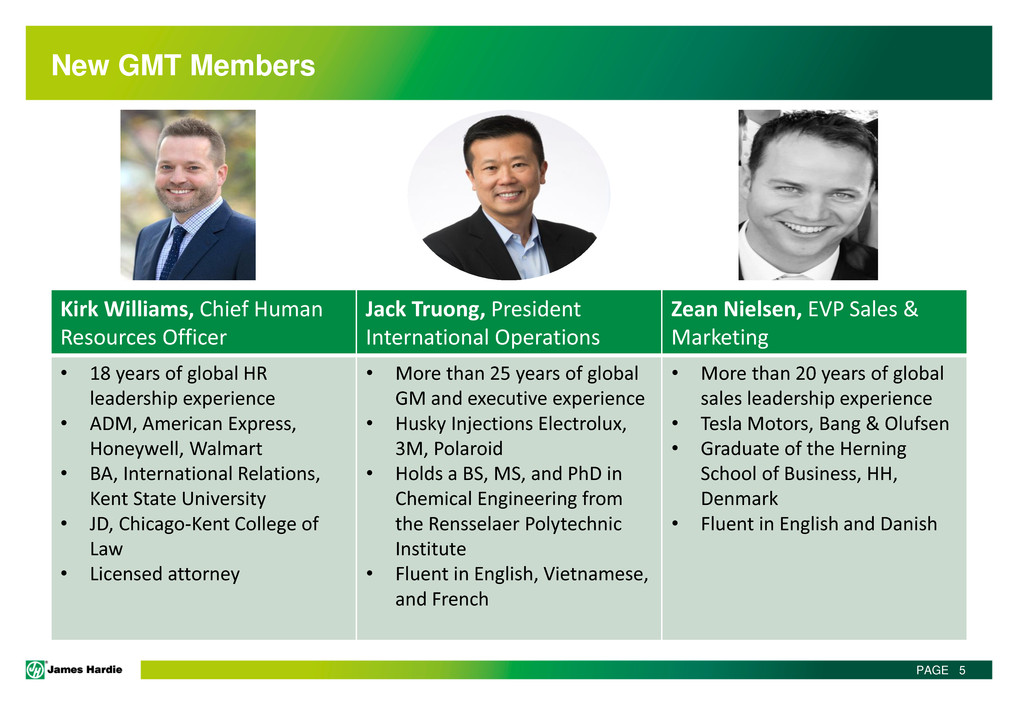 – Addressed GMT leadership gaps with addition of 3 key hires in