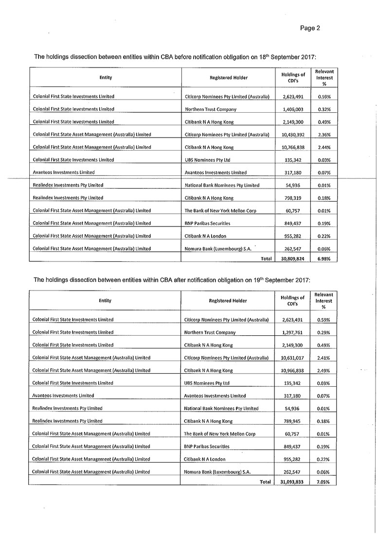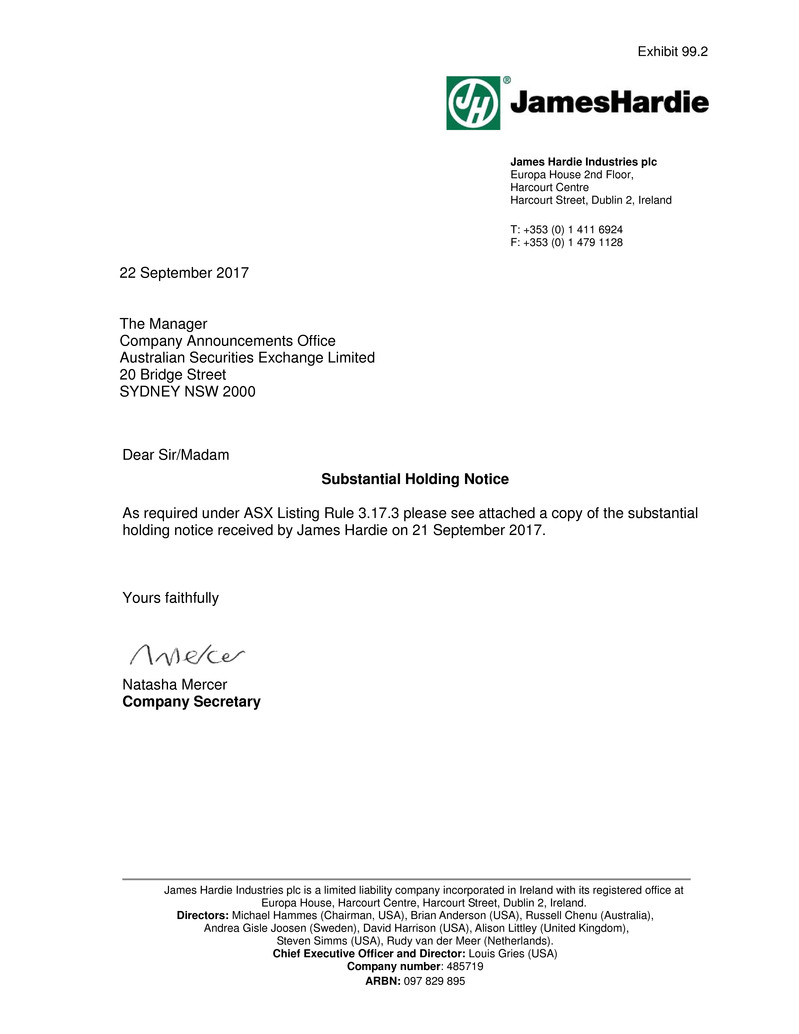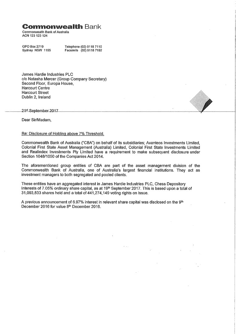 holding notice received by James Hardie on 21 September 2017.