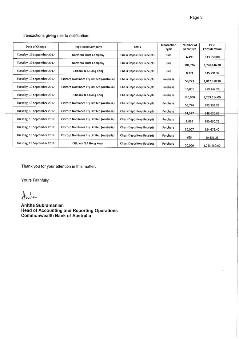 As required under ASX Listing Rule 3.17.3 please see attached a copy of the substantial