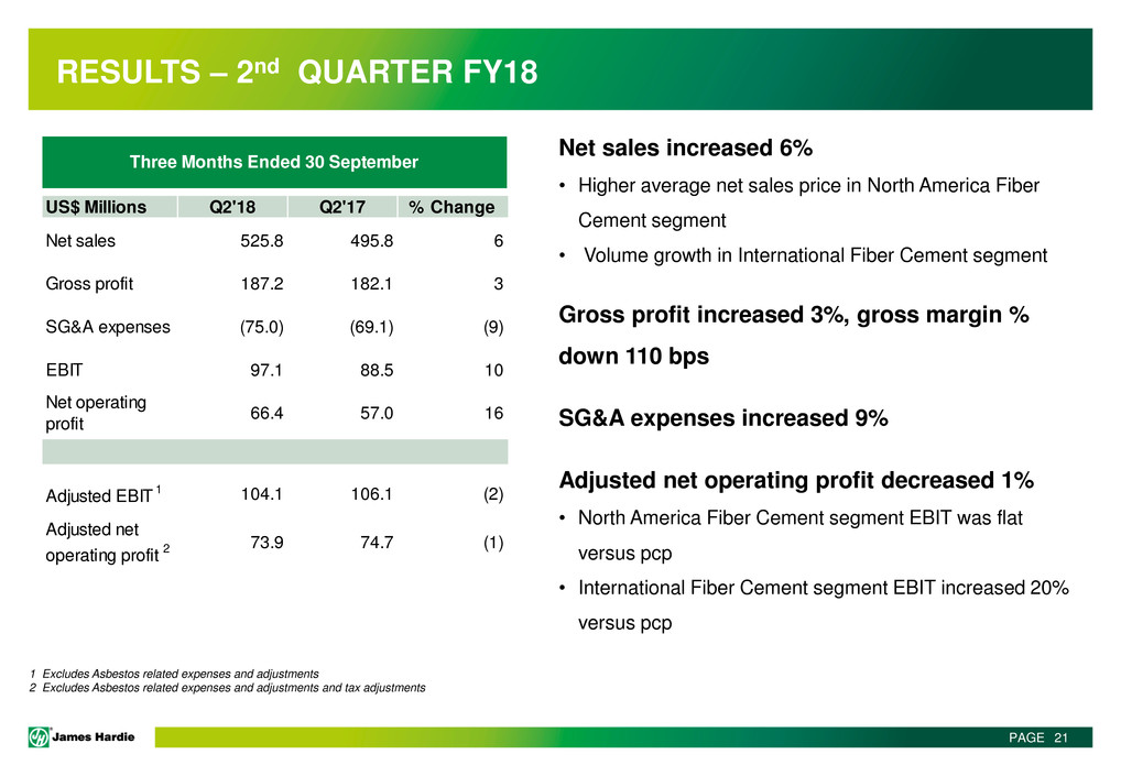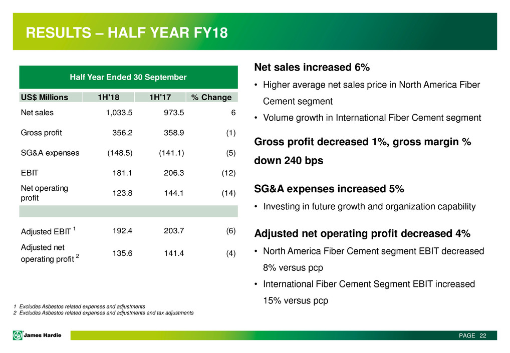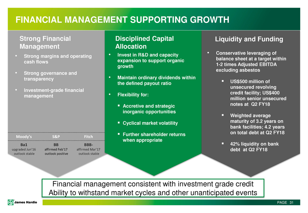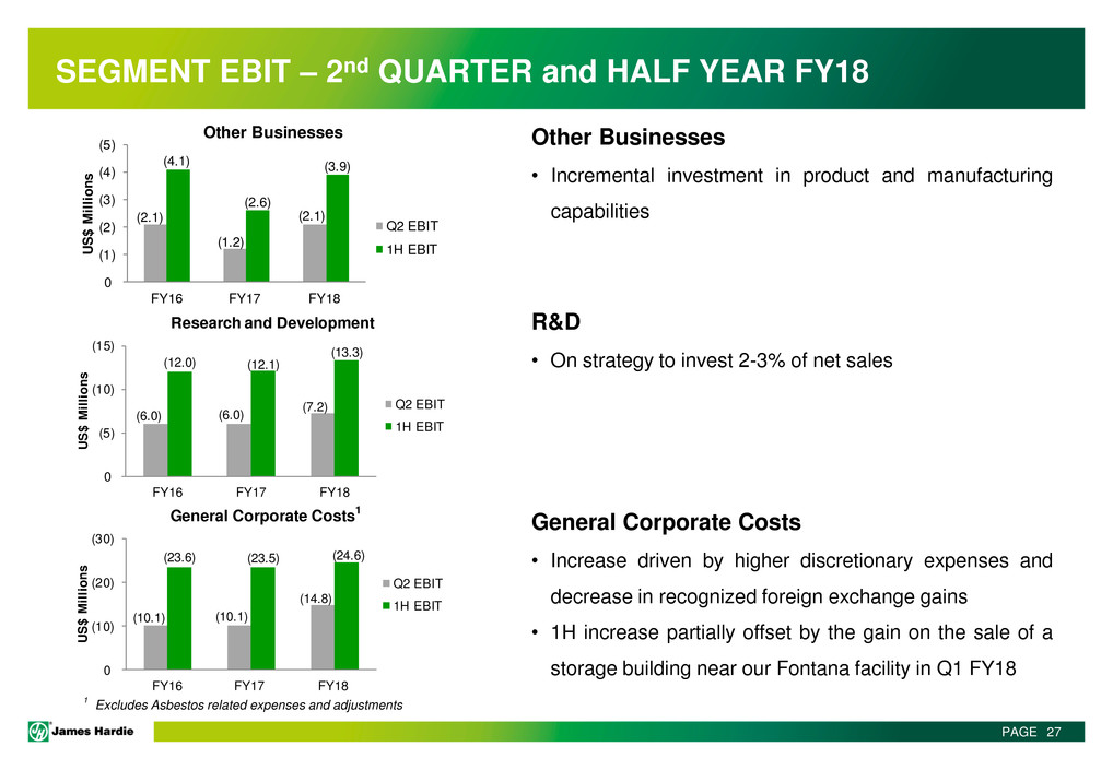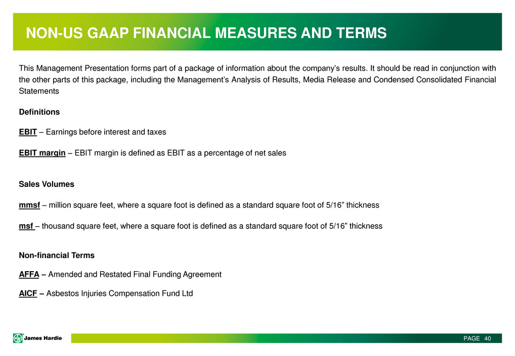 This Management Presentation contains forward-looking statements. James Hardie Industries plc (the “Company”) may from time to time make forward-looking statements in its