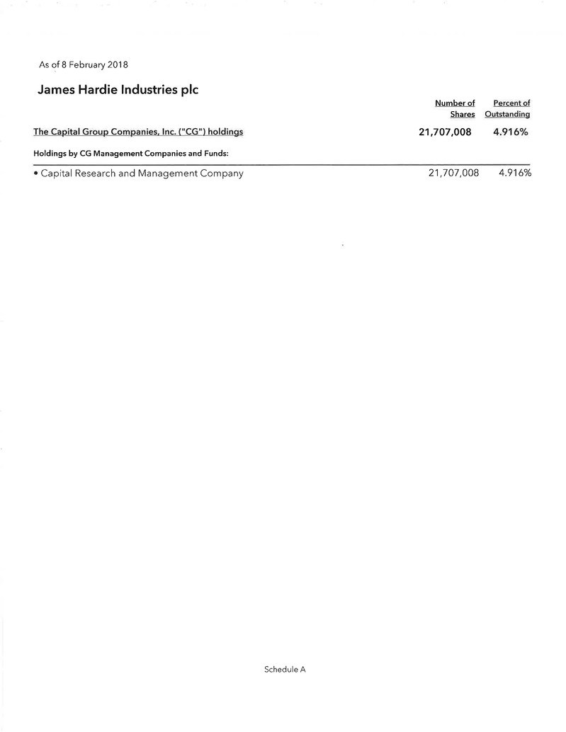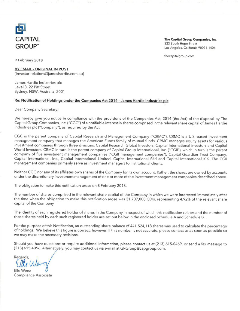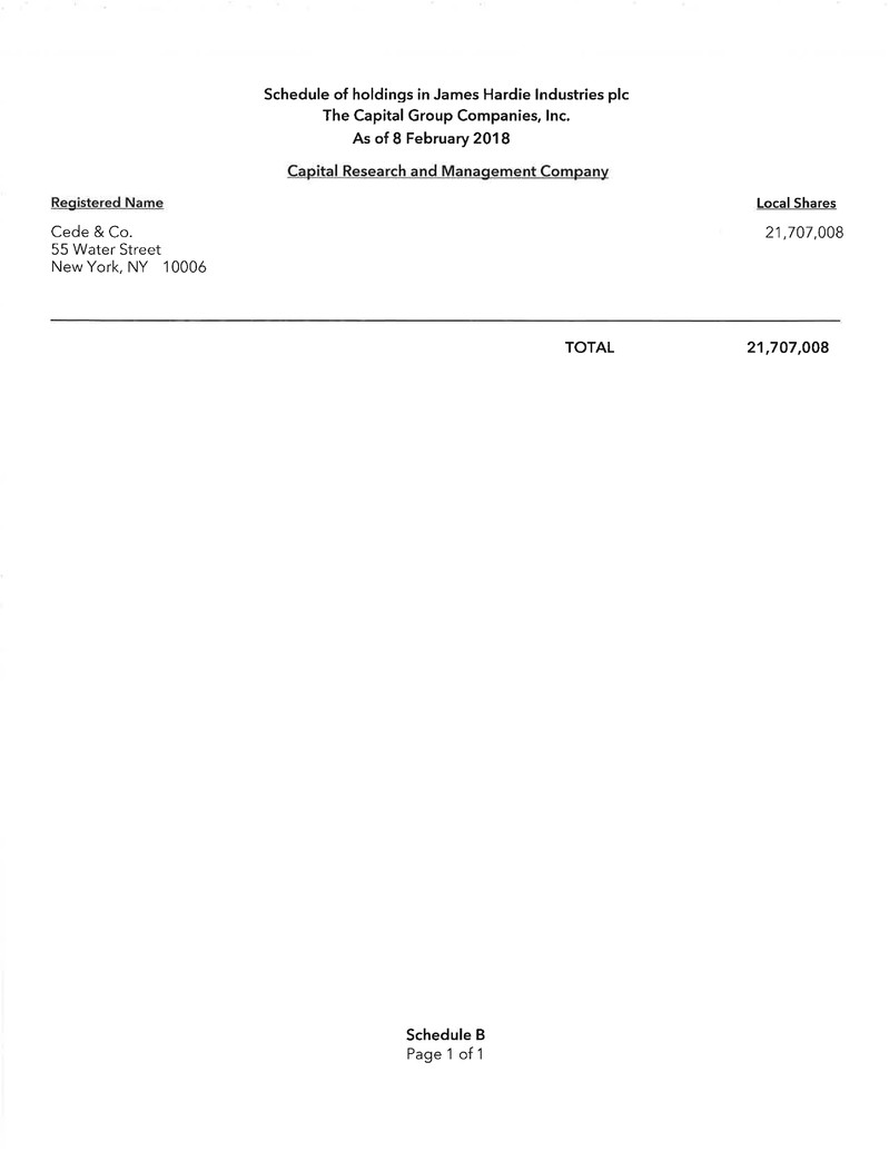 James Hardie Industries plc is a limited liability company incorporated in Ireland with its registered office at