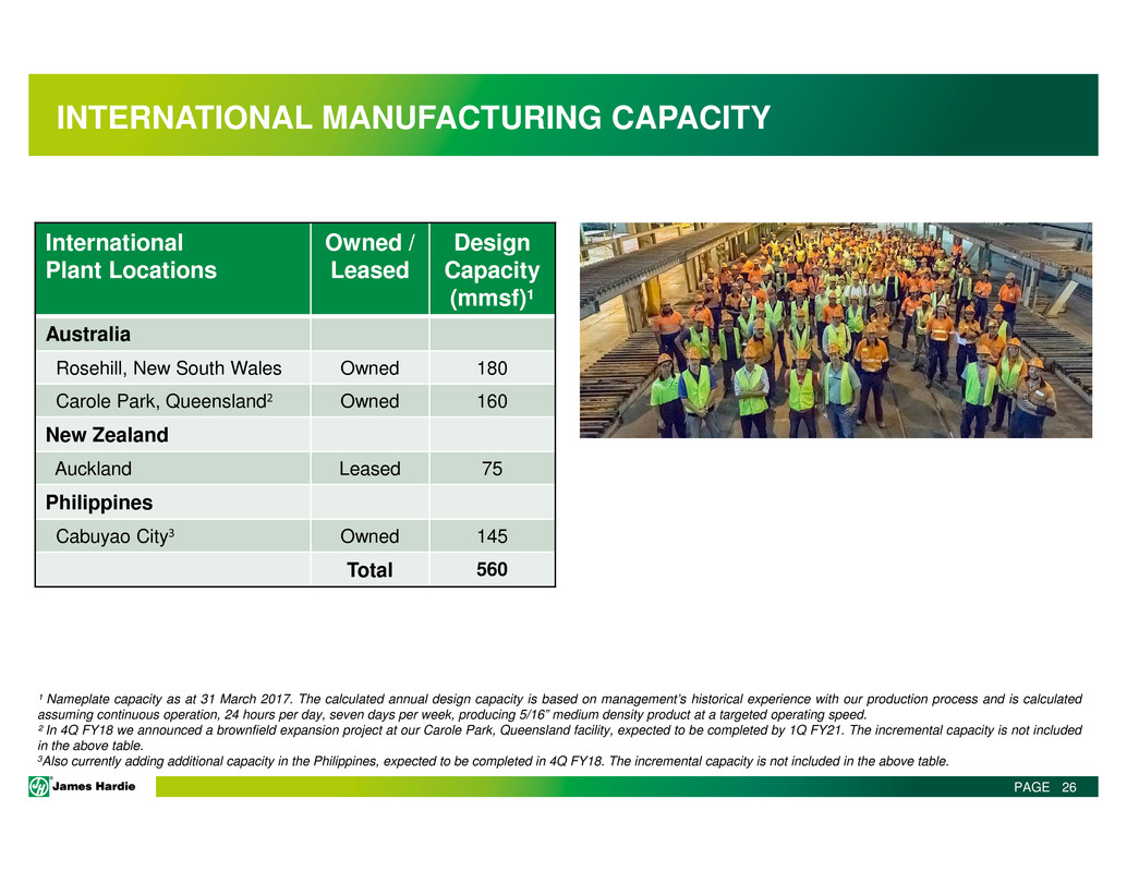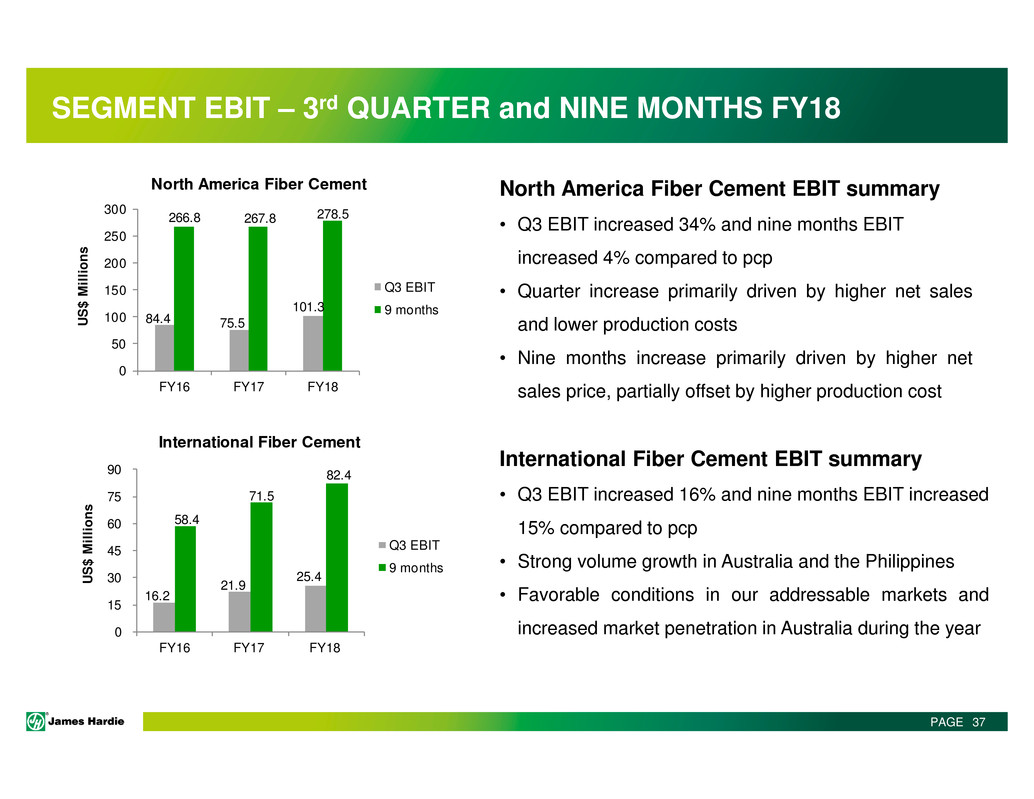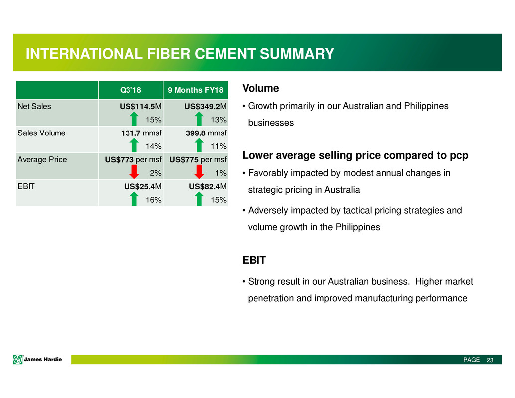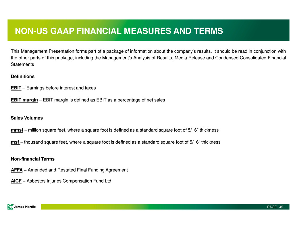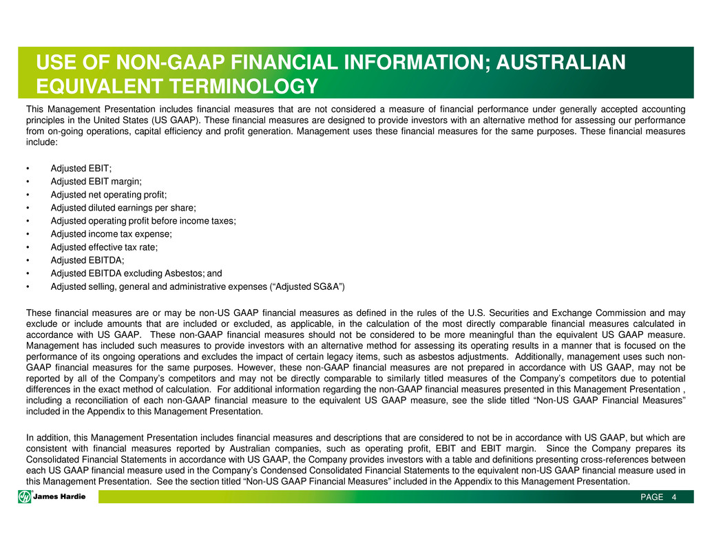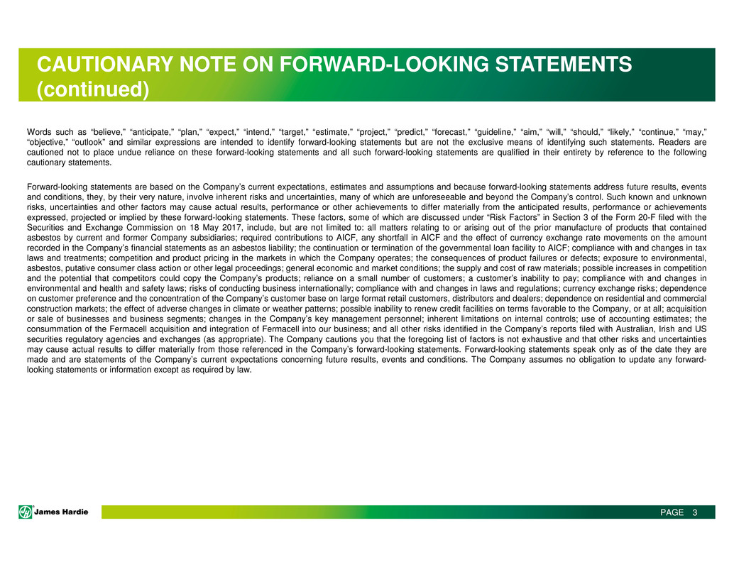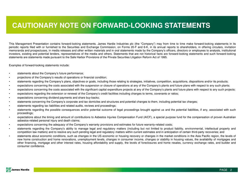This Management Presentation contains forward-looking statements. James Hardie Industries plc (the “Company”) may from time to time make forward-looking statements in its