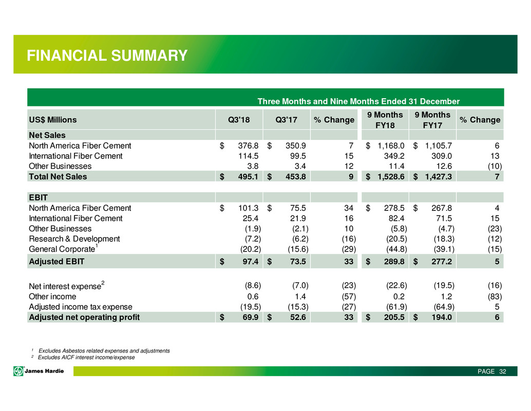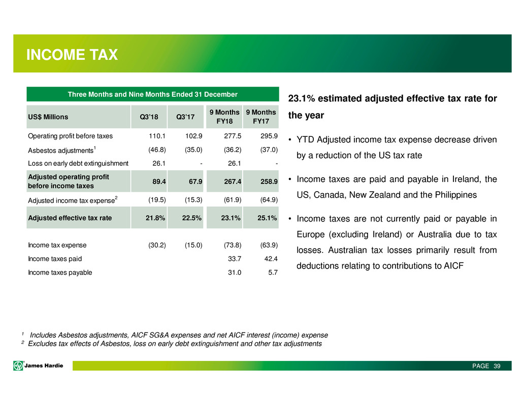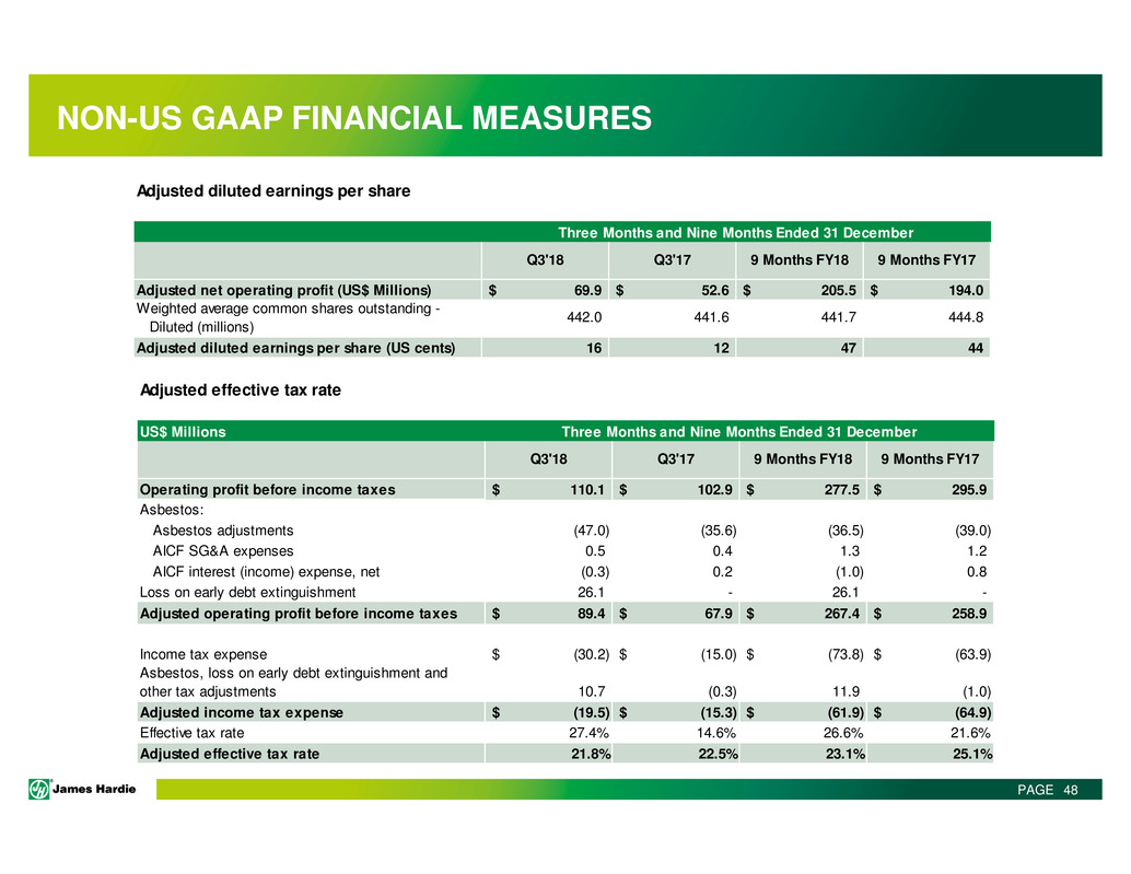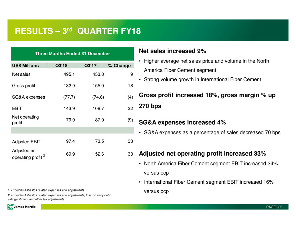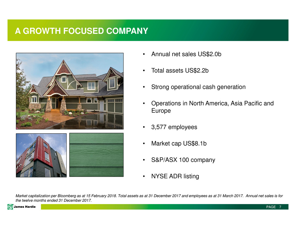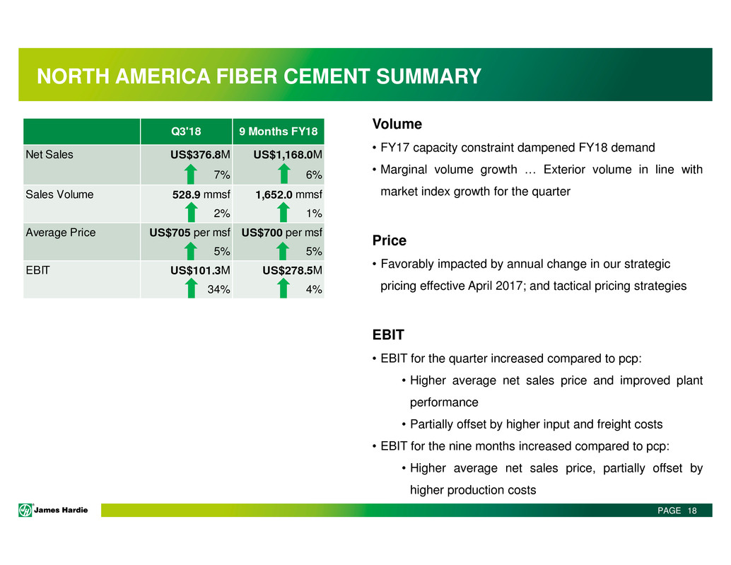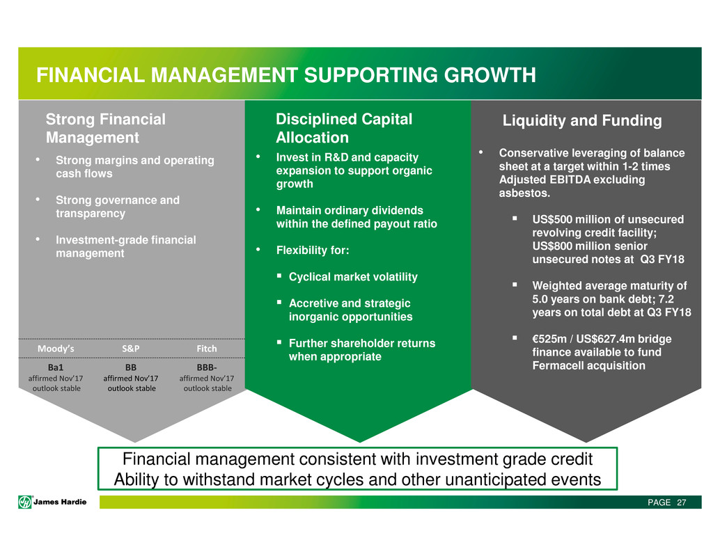 This Management Presentation contains forward-looking statements. James Hardie Industries plc (the “Company”) may from time to time make forward-looking statements in its