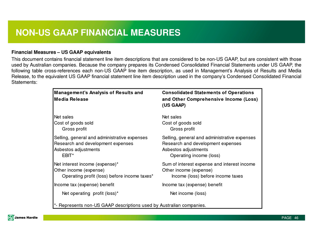including a reconciliation of each non-GAAP financial measure to the equivalent US GAAP measure, see the slide titled “Non-US GAAP Financial Measures”