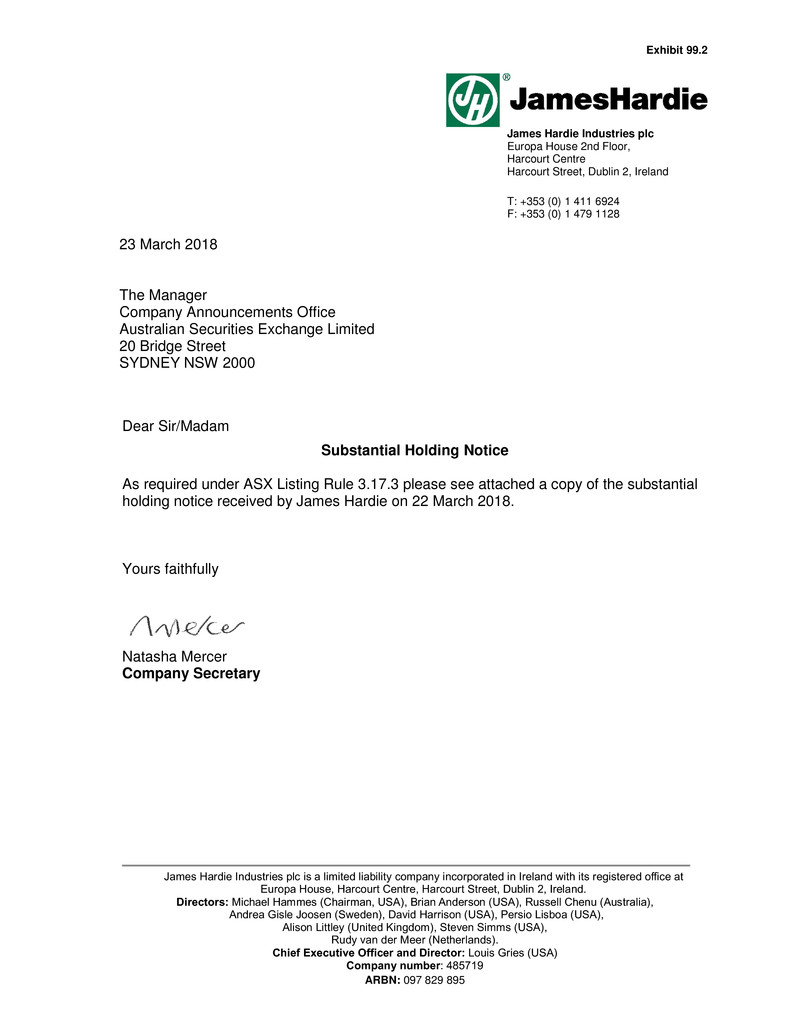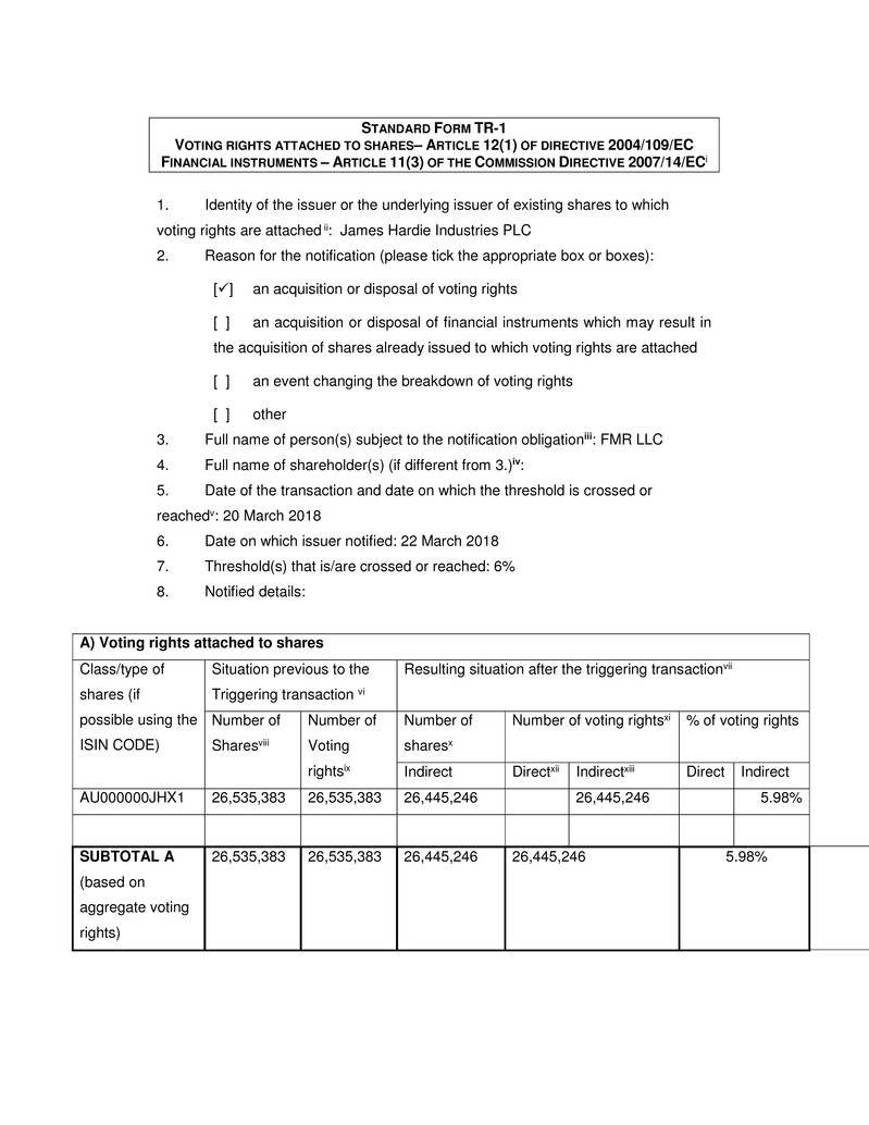 holding notice received by James Hardie on 22 March 2018.