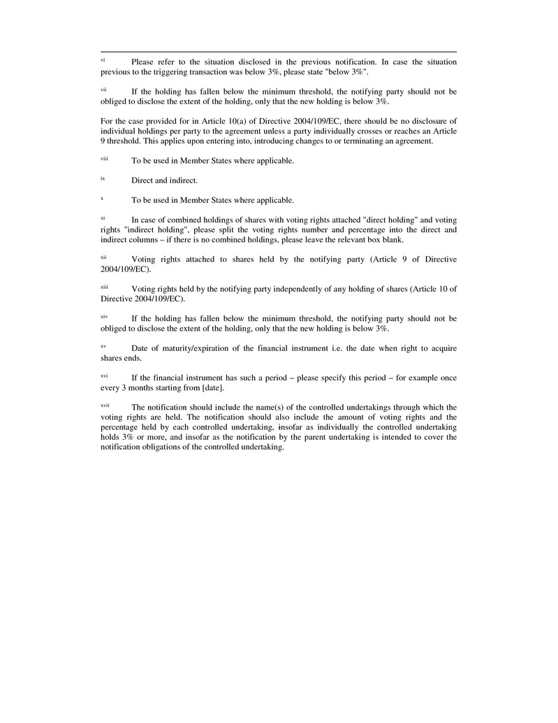 holds 3% or more, and insofar as the notification by the parent undertaking is intended to cover the