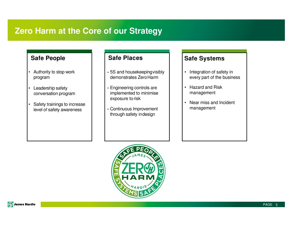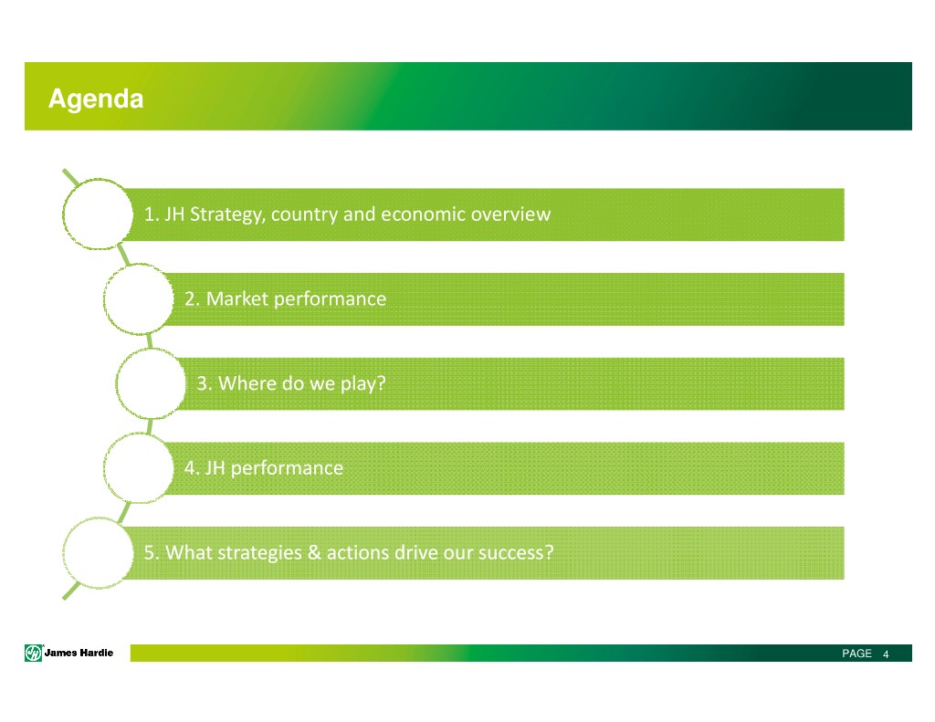 Agenda 1. JH Strategy, country and economic overview 2. Market performance 3. Where do we play? 4. JH performance 5. What strategies & actions drive our success? PAGE 4