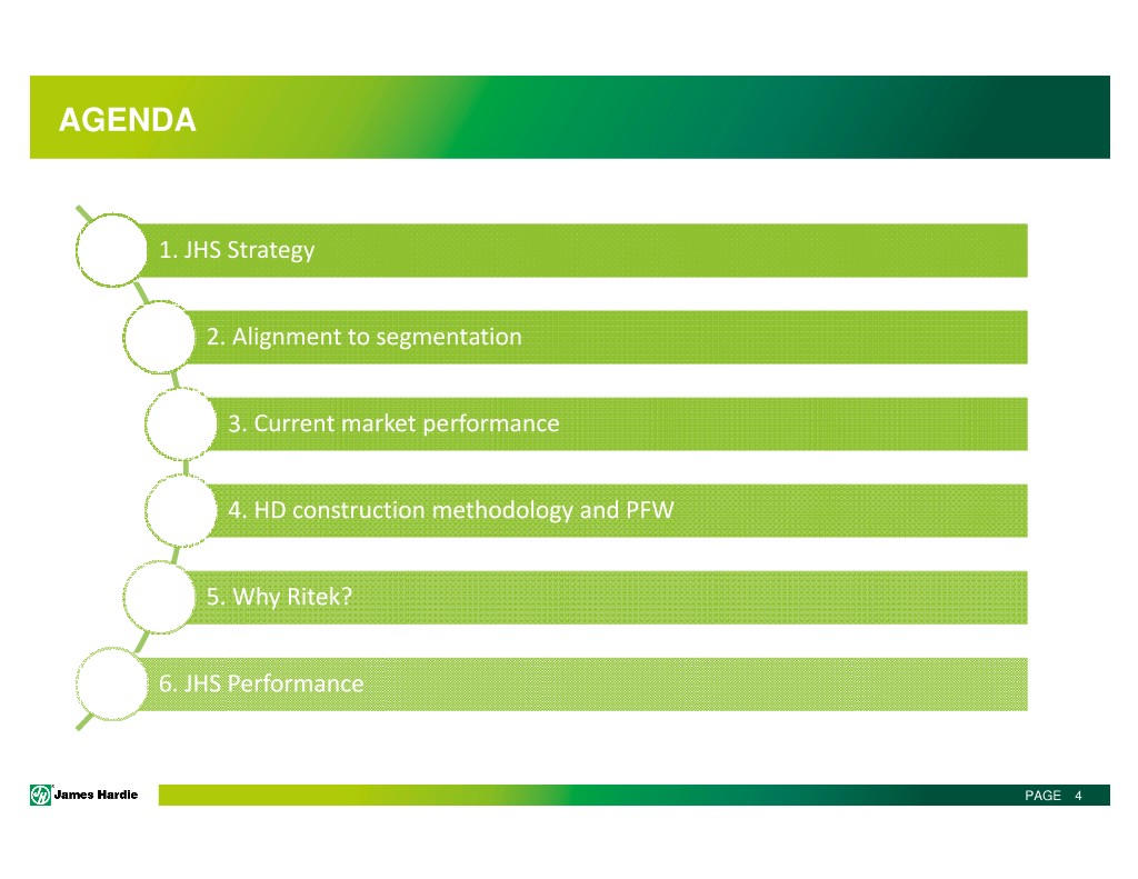AGENDA 1. JHS Strategy 2. Alignment to segmentation 3. Current market performance 4. HD construction methodology and PFW 5. Why Ritek? 6. JHS Performance PAGE 4