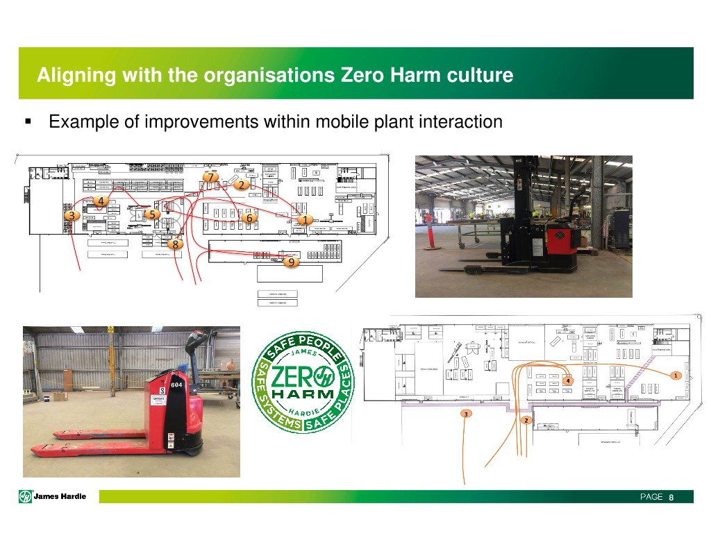 Aligning with the organisations Zero Harm culture Example of improvements within mobile plant interaction PAGE 8