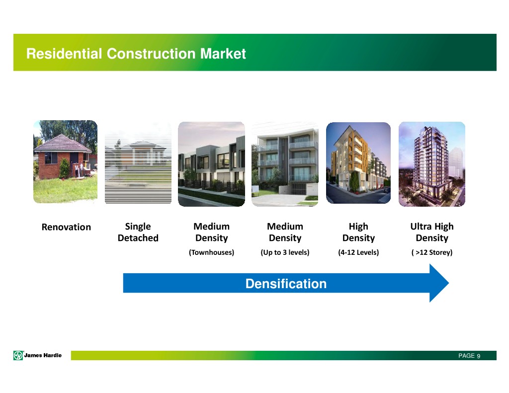 Residential Construction Market Renovation Single Medium Medium High Ultra High Detached Density Density Density Density (Townhouses) (Up to 3 levels) (4-12 Levels) ( >12 Storey) Densification PAGE 9