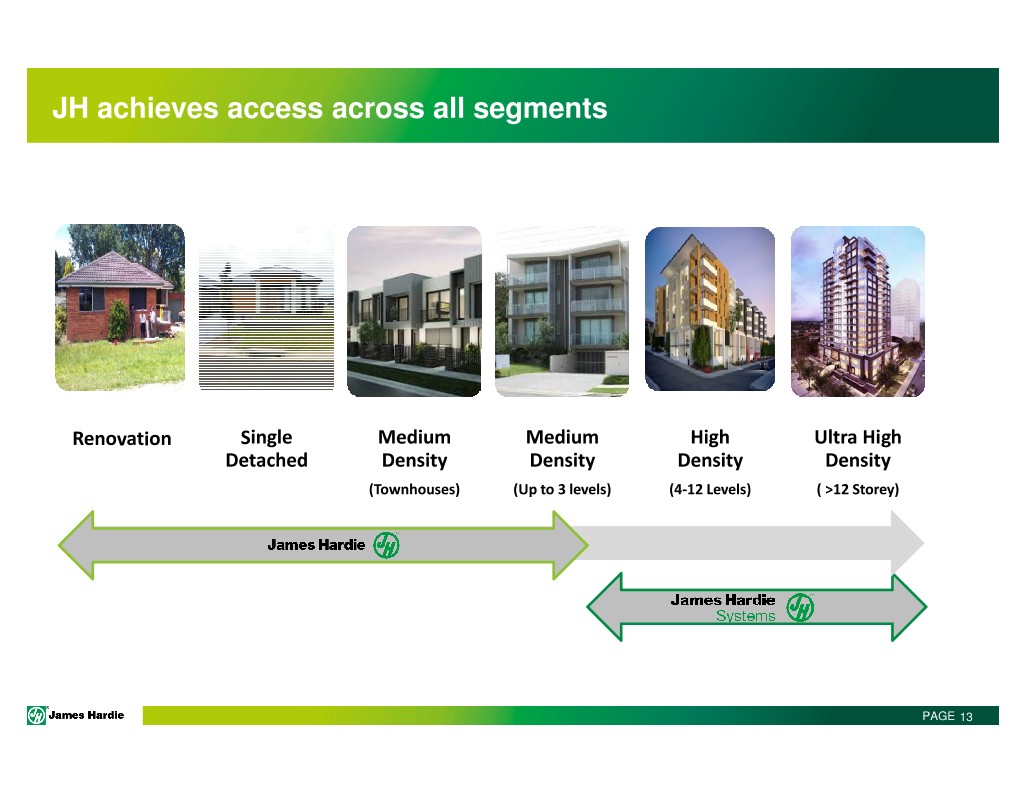 JH achieves access across all segments Renovation Single Medium Medium High Ultra High Detached Density Density Density Density (Townhouses) (Up to 3 levels) (4-12 Levels) ( >12 Storey) PAGE 13