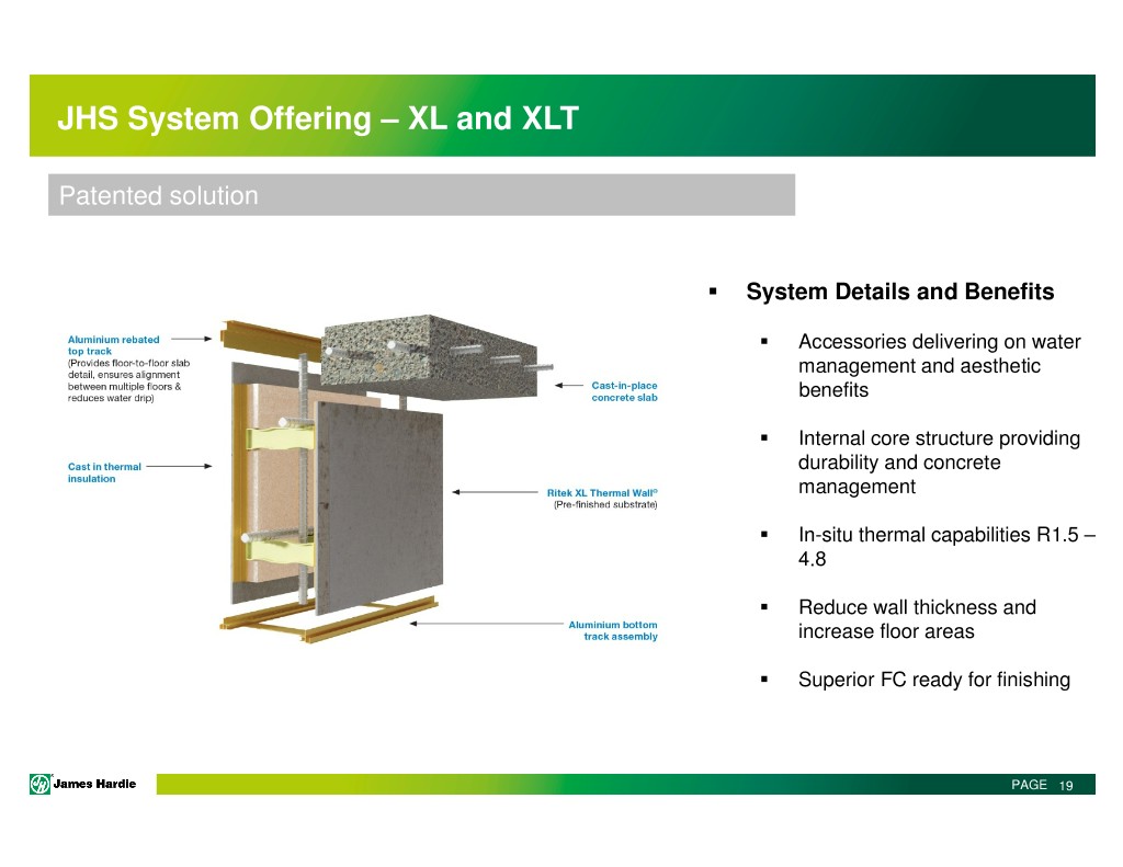 JHS System Offering – XL and XLT Patented solution System Details and Benefits Accessories delivering on water management and aesthetic benefits Internal core structure providing durability and concrete management In-situ thermal capabilities R1.5 – 4.8 Reduce wall thickness and increase floor areas Superior FC ready for finishing PAGE 19
