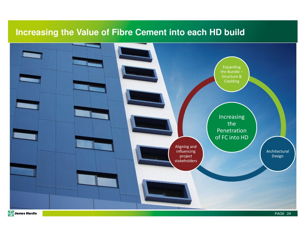 Increasing the Value of Fibre Cement into each HD build Expanding the Bundle – Structure & Cladding Increasing the Penetration of FC into HD Aligning and influencing Architectural project Design stakeholders PAGE 24