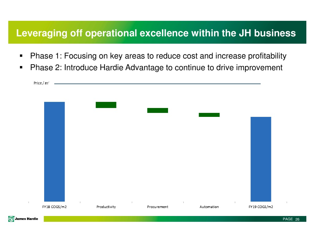 Leveraging off operational excellence within the JH business Phase 1: Focusing on key areas to reduce cost and increase profitability Phase 2: Introduce Hardie Advantage to continue to drive improvement PAGE 26