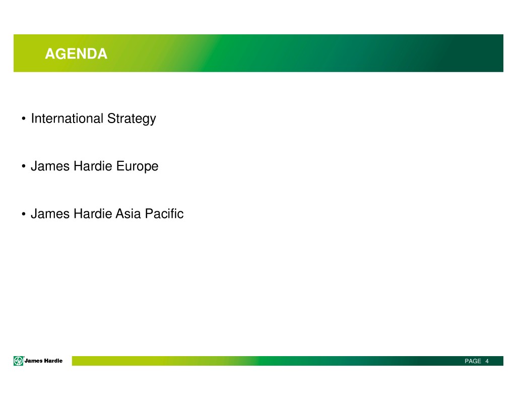 AGENDA • International Strategy • James Hardie Europe • James Hardie Asia Pacific PAGE 4