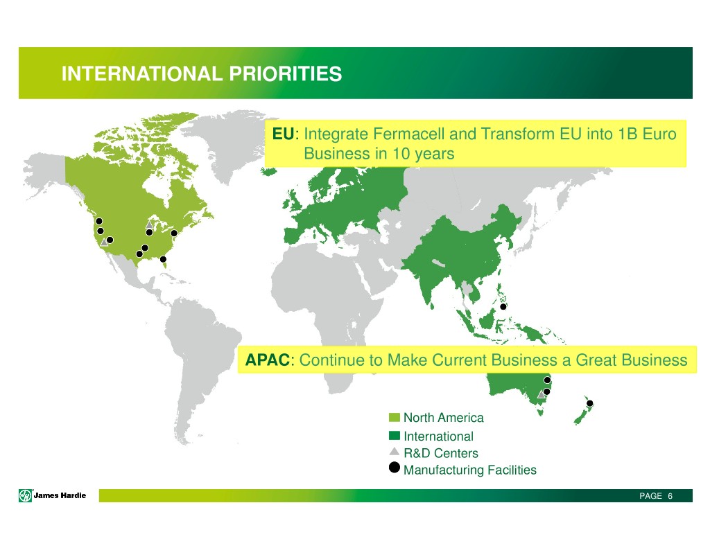 INTERNATIONAL STRATEGY North America International R&D Centers Manufacturing Facilities PAGE 5