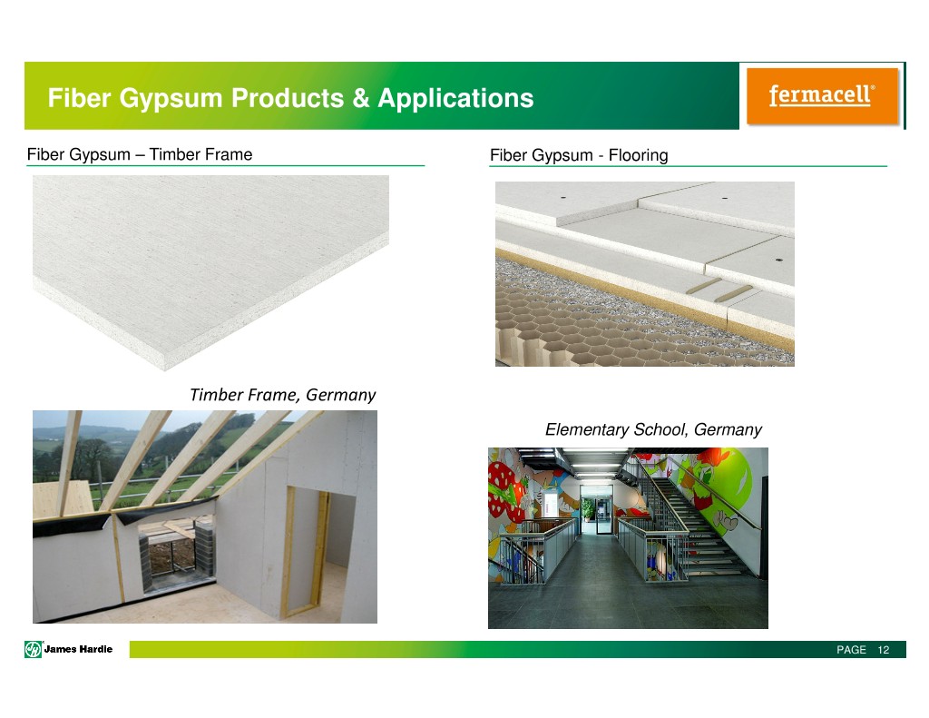 Fiber Gypsum Products & Applications Fiber Gypsum – Timber Frame Fiber Gypsum - Flooring Timber Frame, Germany Elementary School, Germany PAGE 12