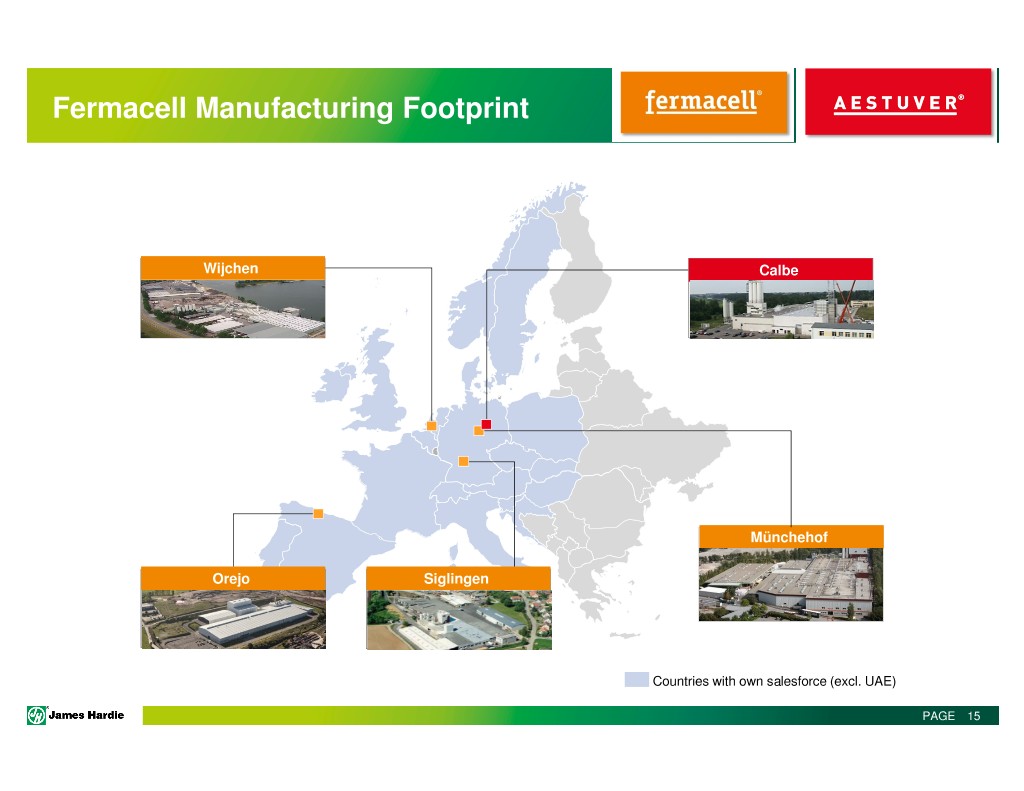 Fermacell Manufacturing Footprint Wijchen Calbe Münchehof Orejo Siglingen Countries with own salesforce (excl. UAE) PAGE 15