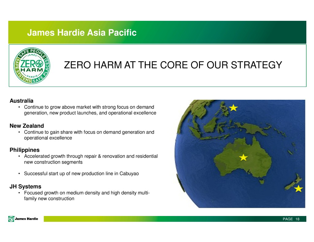 AGENDA • International Strategy • James Hardie Europe • James Hardie Asia Pacific PAGE 17