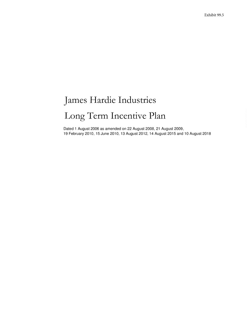 Exhibit 99.5 James Hardie Industries Long Term Incentive Plan Dated 1 August 2006 as amended on 22 August 2008, 21 August 2009, 19 February 2010, 15 June 2010, 13 August 2012, 14 August 2015 and 10 August 2018