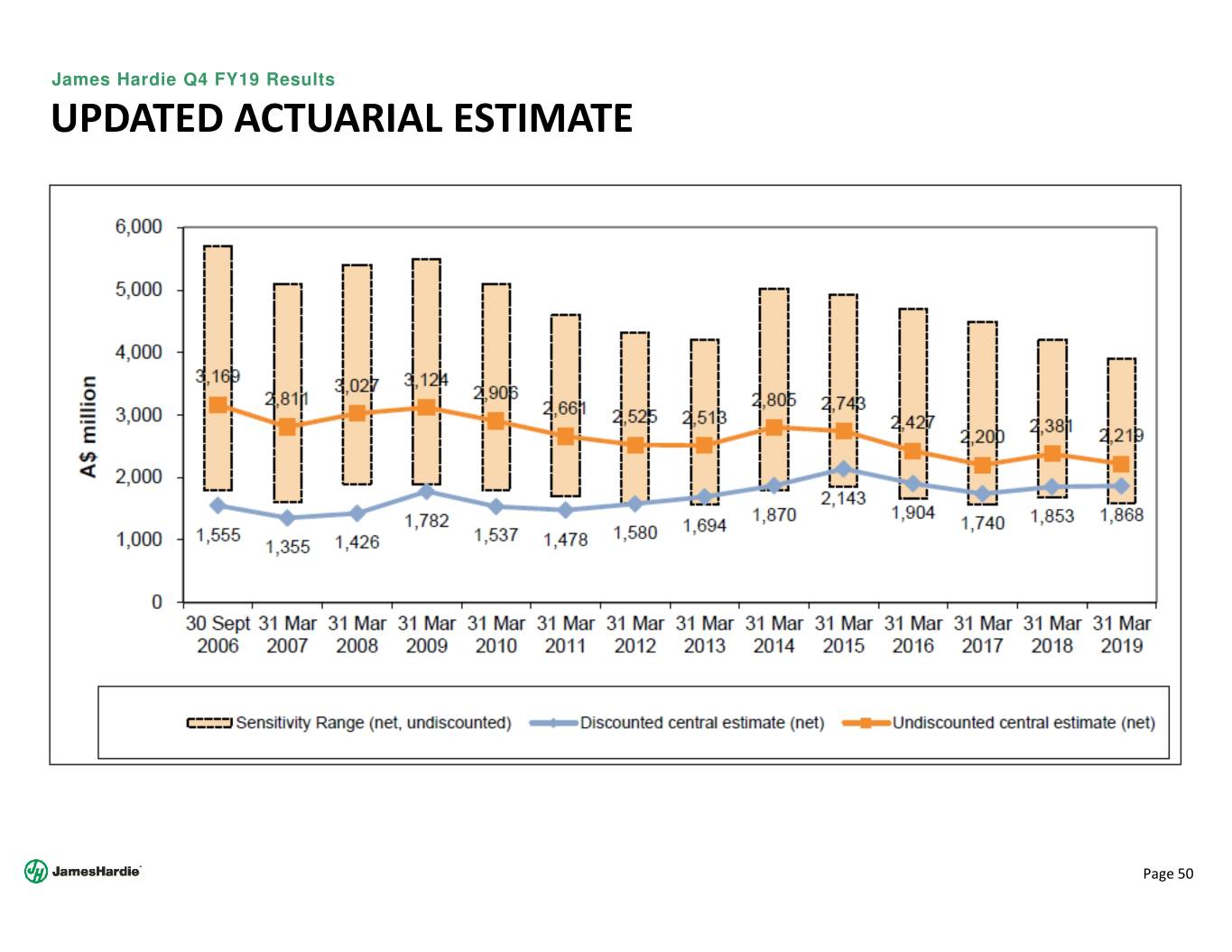 James Hardie Q4 FY19 Results UPDATED ACTUARIAL ESTIMATE Page 50