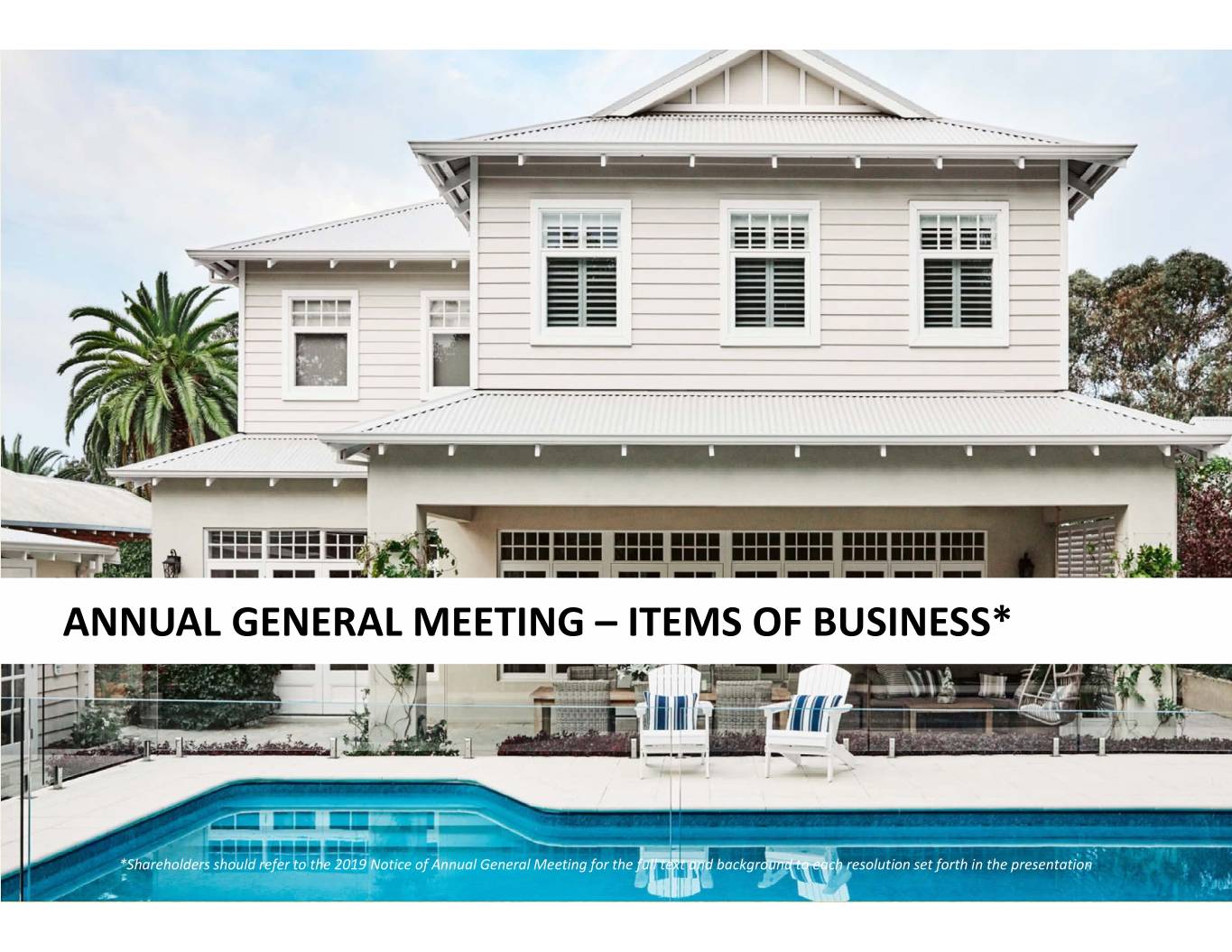 • Xxx • Xxx ANNUAL GENERAL MEETING – ITEMS OF BUSINESS* *Shareholders should refer to the 2019 Notice of Annual General Meeting for the full text and background to each resolution set forth in the presentation